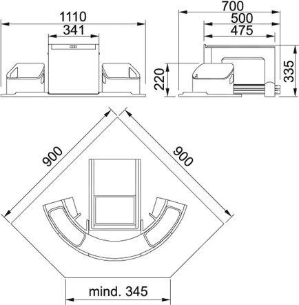 - minimale montageruimte: 1110 x 700 x 335 mm