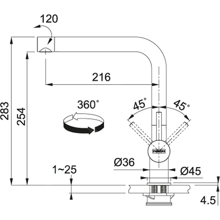 Keukenkraan Samoa, zonder douche